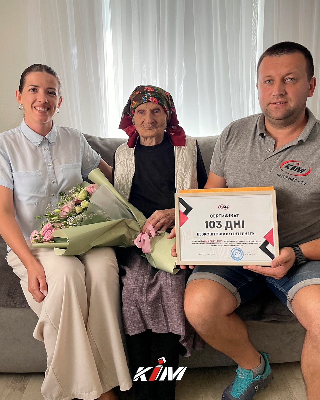 На знак вдячності за довіру та з нагоди ювілею ми подарували пані Ганні 103 дні безкоштовного інтернету від КІМ.